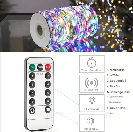 Can be easily turned on and off; brightness can be adjusted. It has 8 different modes with timers at the same time, making DIY the best option for your own decoration.
